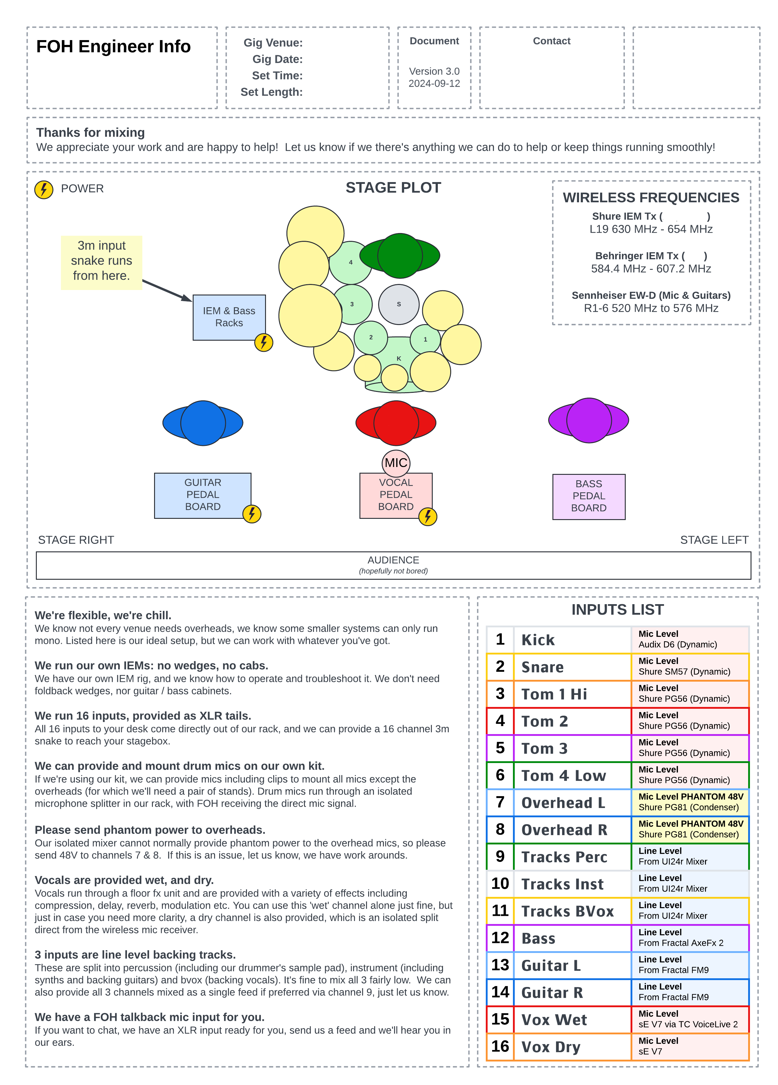 What mixer do I need? How do I split my inputs for front of house? What do I tell the sound guy? Do I need a laptop? How can I sync DMX lighting? How do I run my click and backing tracks… or for that matter how do I make them?